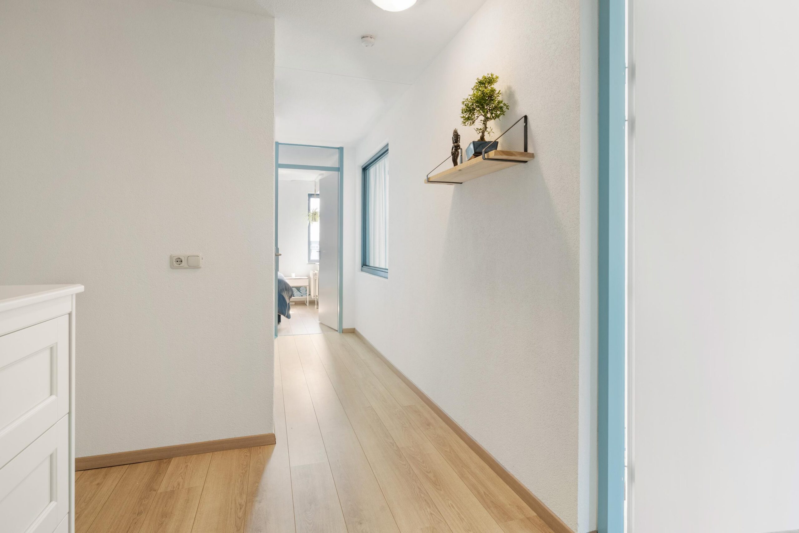 Tweede woonlaag: via de vaste trap bereik je de ruime overloop met toegang tot twee slaapkamers en een royale entresol. Deze entresol is momenteel in gebruik als werk-/logeerruimte, maar kan eenvoudig worden omgebouwd tot een derde slaapkamer door het plaatsen van een wand. De volledig betegelde badkamer is uitgevoerd in neutrale tinten en beschikt over een ligbad, tweede toilet en een wastafel. Deze verdieping is voorzien van laminaat en beschikt over een aparte berg- en wasruimte.