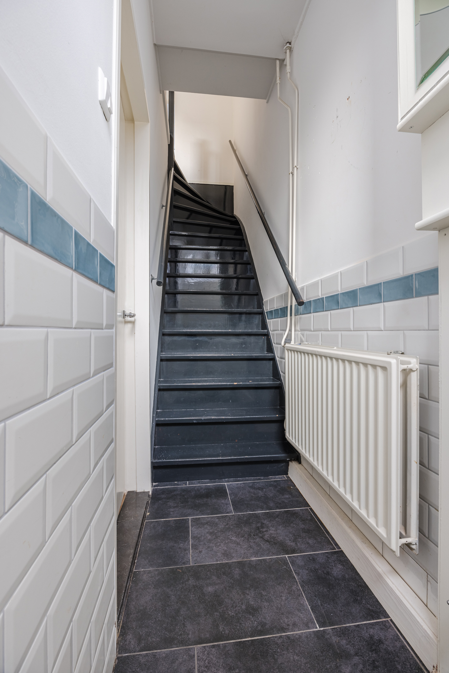 Deze aantrekkelijke stadswoning met fraaie façade is gelegen in het rijksbeschermde stadsgezicht van Leiden. De entreehal ademt karakter met een ouderwetse bel en fraaie wandtegeltjes aan de muur. Rechts de moderne groepenkast en aan de linkerzijde de toegang tot de ruime en zeer lichte woonkamer. De nieuwe pvc vloer met visgraat motief, de gestucte wanden en plafonds geven deze ruimte een moderne look.