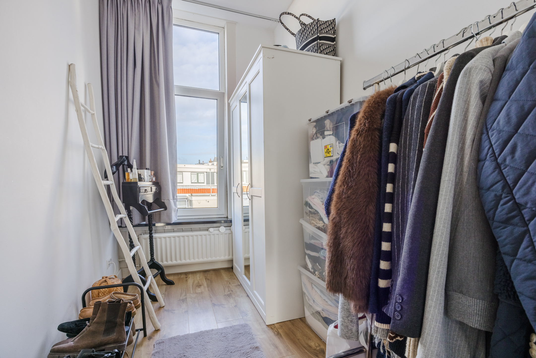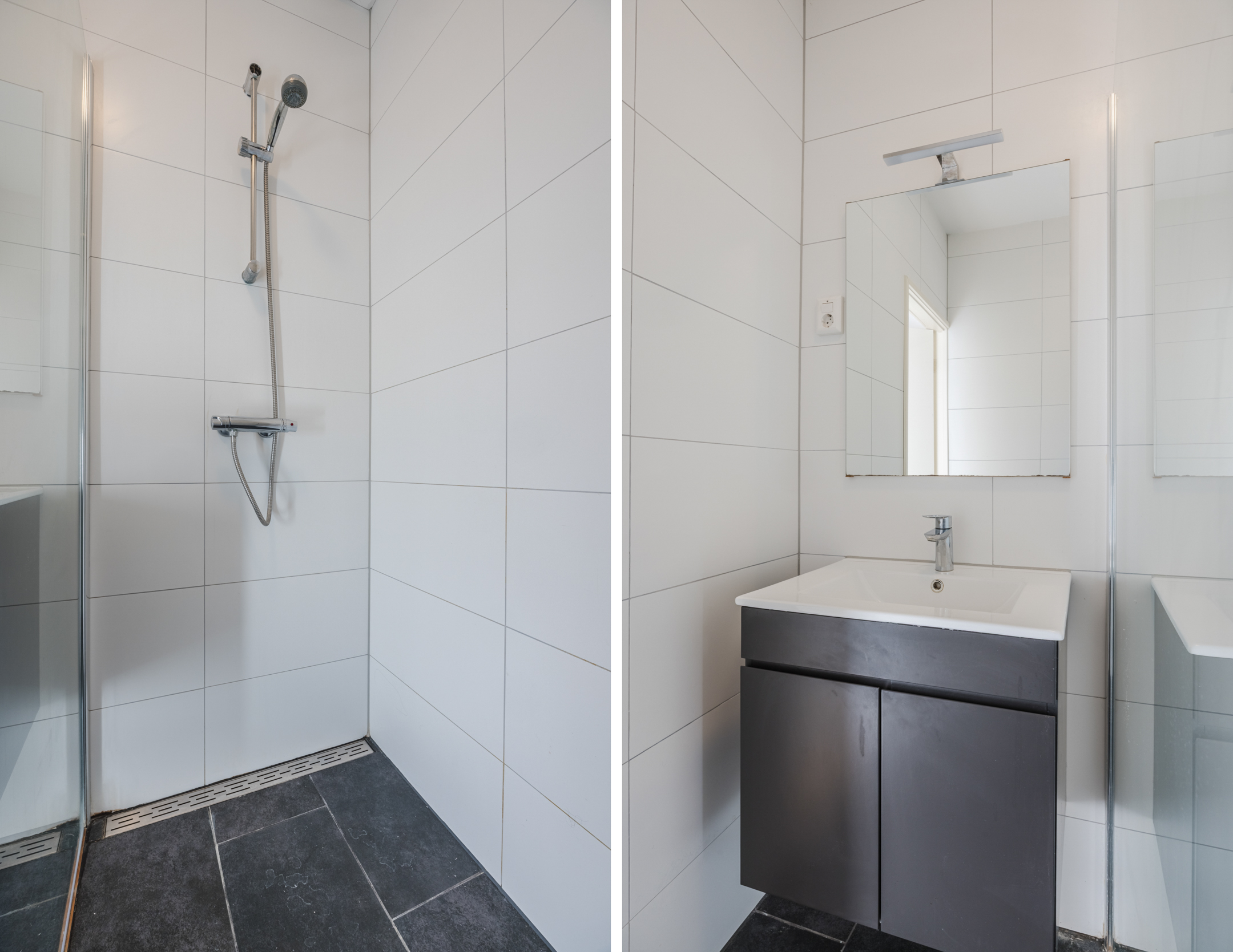 Aan de achterzijde nog 2 slaapkamers met eveneens grote ramen en ook een goed uitzicht op de achtergelegen tuinen. De modern uitgevoerde badkamer is centraal gelegen en beschikt over een comfortabele inloopdouche en een stijlvol wastafelmeubel