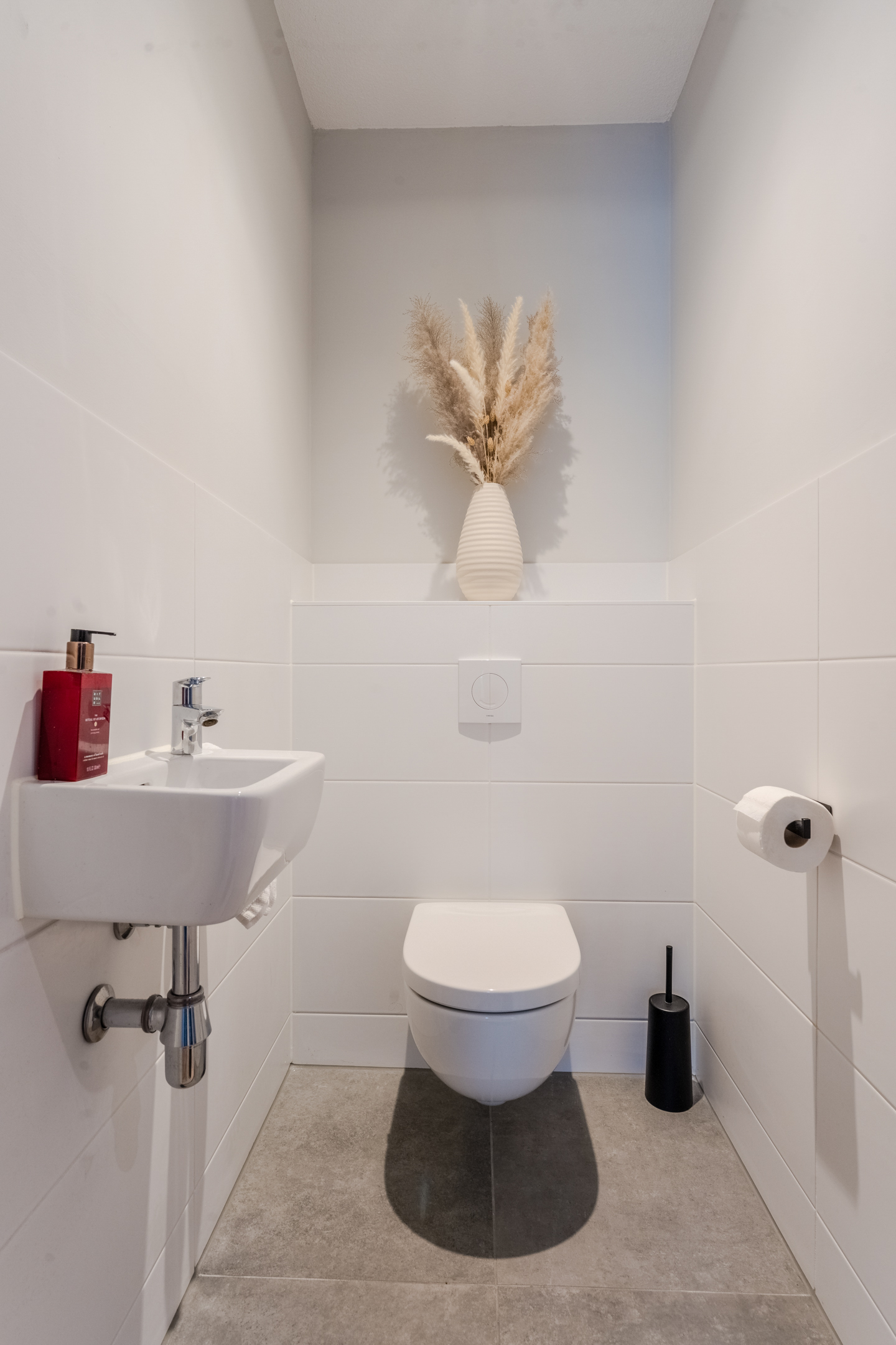 De moderne badkamer is stijlvol uitgevoerd en voorzien van een inloopdouche, een strak wastafelmeubel en een designradiator. Aangrenzend bevindt zich de praktische inpandige berging, waar de opstelplaatsen voor de wasmachine en droger zijn gesitueerd, evenals de WTW-installatie.